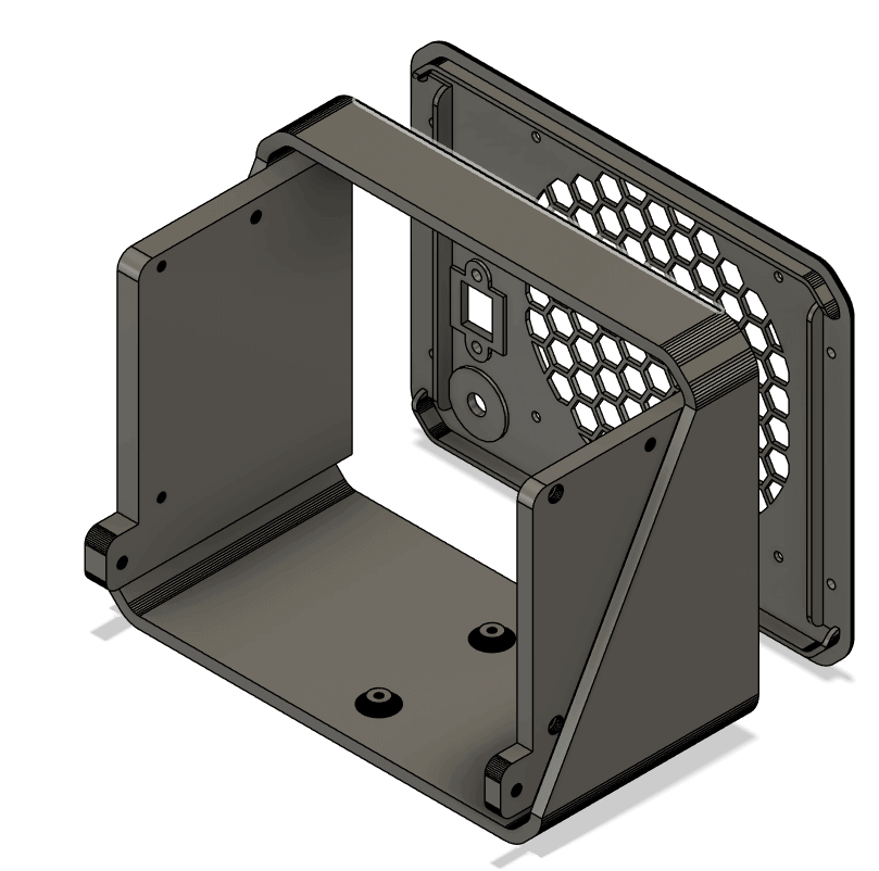 I also decided to redesign the rear panel and make it a removable part. This avoids reprinting the entire rear of the chassis if I want to add more ports or if I simply want to access the internals. It adds a few more brass inserts and screws but greatly improves flexibility.