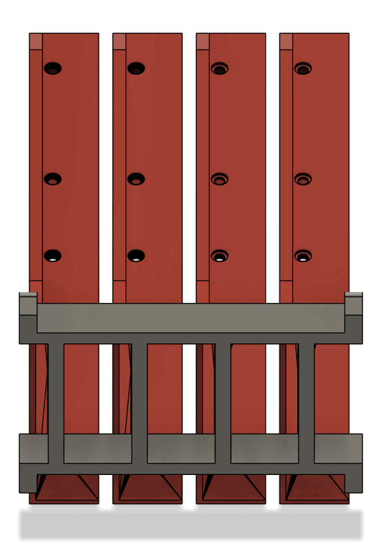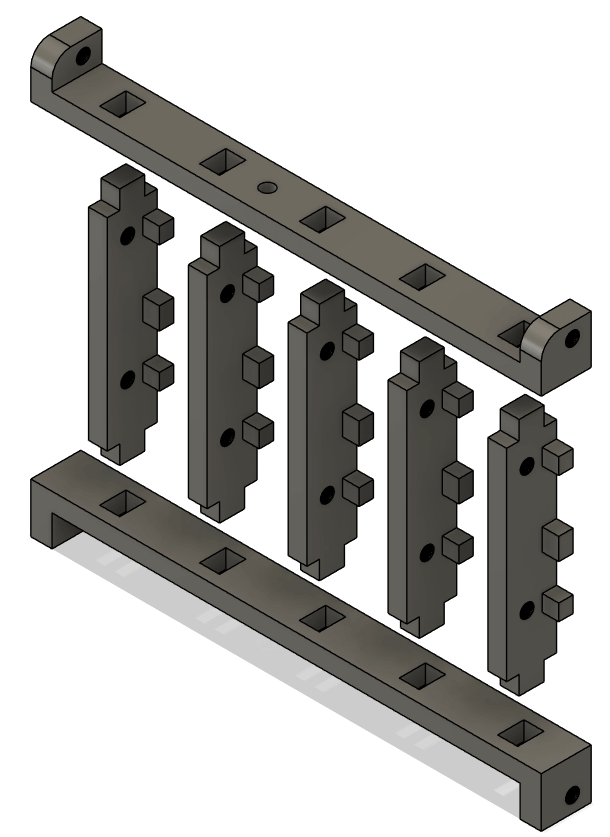 On the original design, the brass inserts and screws on the original had to be assembled in a specific order with long tools, something I wasn't particularly fond of. I made the SATA bracket modular so that everything is restricted in place when screwed into the chassis, I also added pins behind the SATA connectors to help with orientation during assembly.